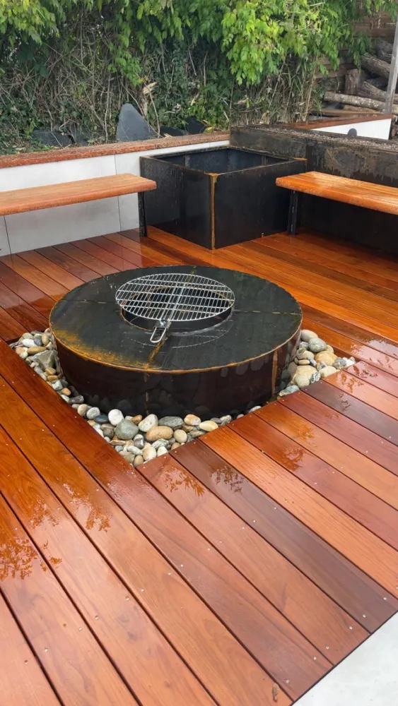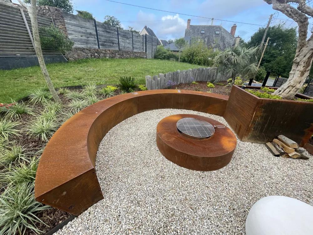 L'acier corten est sélectionné pour sa résistance exceptionnelle aux intempéries et son esthétisme unique : une patine rouillée protectrice qui évolue avec le temps, garantissant une installation qui traversera les saisons 💪 et confère un cachet inimitable.