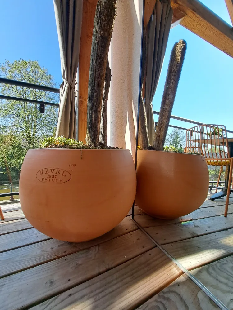 Pots en terre cuite : Ils sont choisis pour leur charme naturel et leur capacité à réguler l'humidité, offrant un environnement idéal pour vos plantes 🌱. Leur texture et leur couleur apportent une touche d'authenticité.