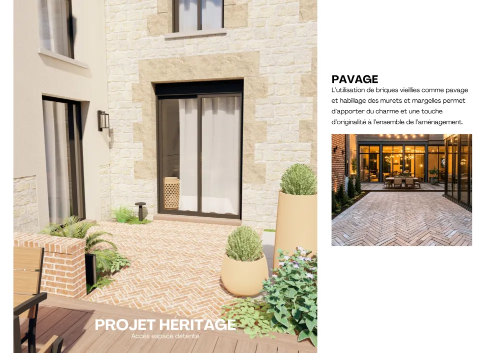 Le projet s'inspire totalement des lieux et propose un parti pris avec des matériaux de qualité : l'alliance de la brique🧱, du béton et du bois. Les différents matériaux s'allient parfaitement et permettent de différencier les espaces tout en mettant en valeur l'aménagement et l'habitation.