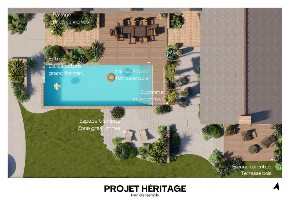 Votre paysagiste Tendance Naturelle🐞 vous présente ce nouveau projet de conception pour un ancien corps de ferme totalement réaménagé. Le projet porte sur le réaménagement total de l'ancienne cour avec la création de plusieurs espaces terrasses, la création d'une entrée et l'intégration d'une piscine💦.