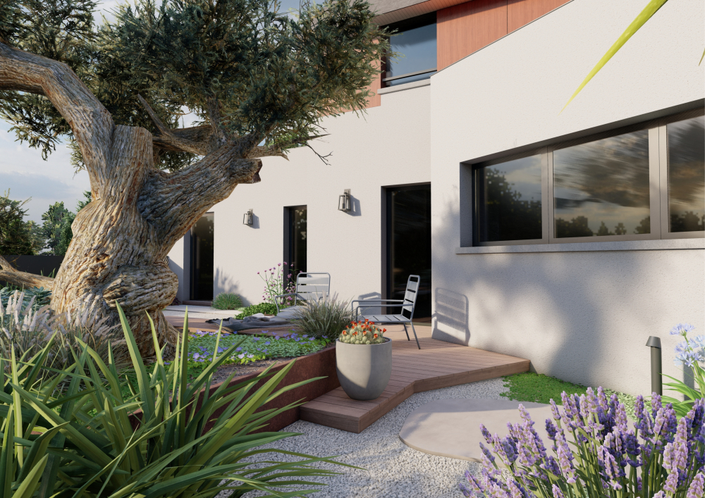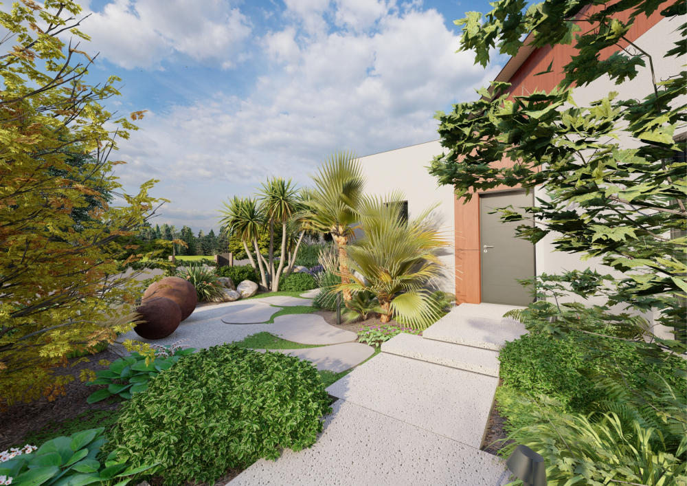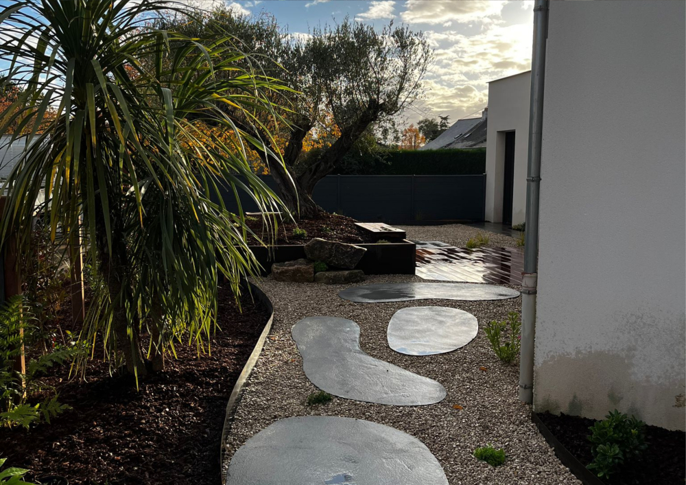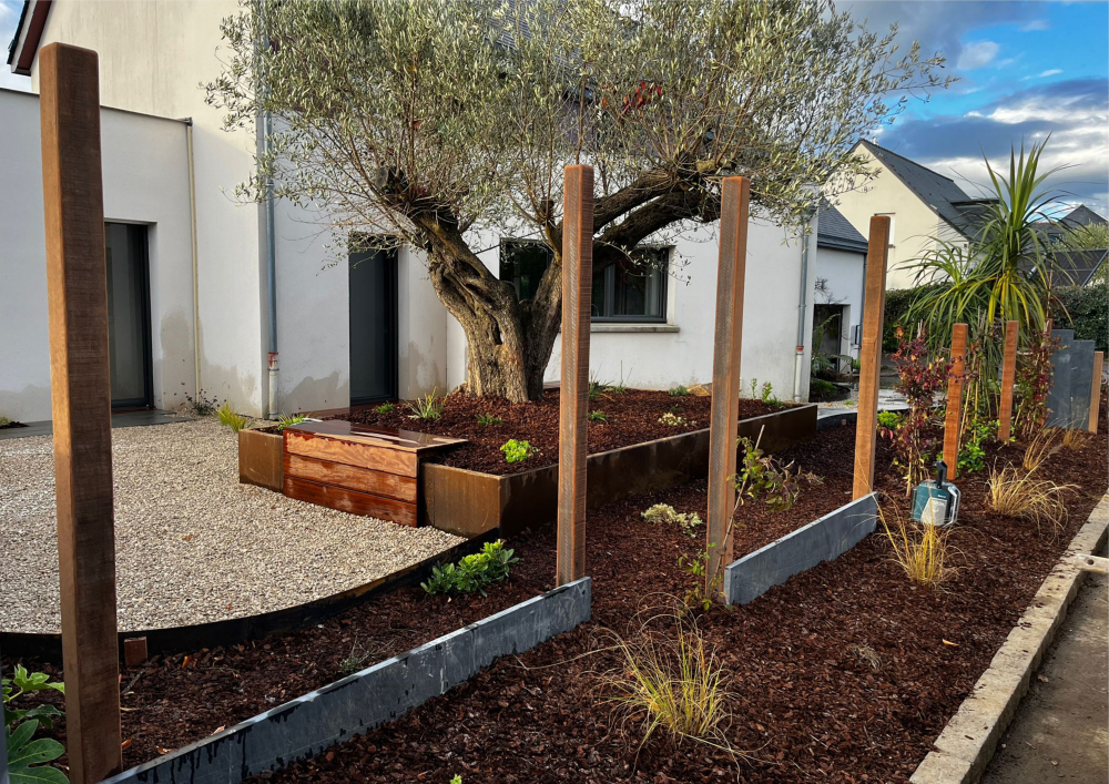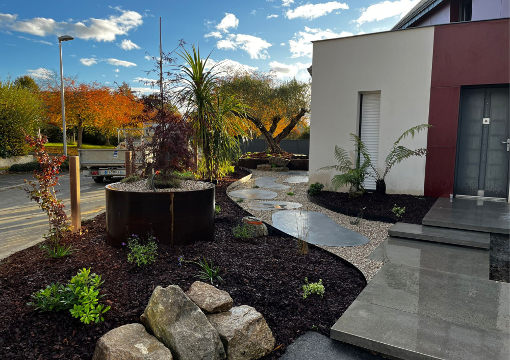 Tendance Naturelle 🐞, votre paysagiste à Betton vous présente ce projet original d'aménagement d'une entrée de maison à Betton, le projet Sola.