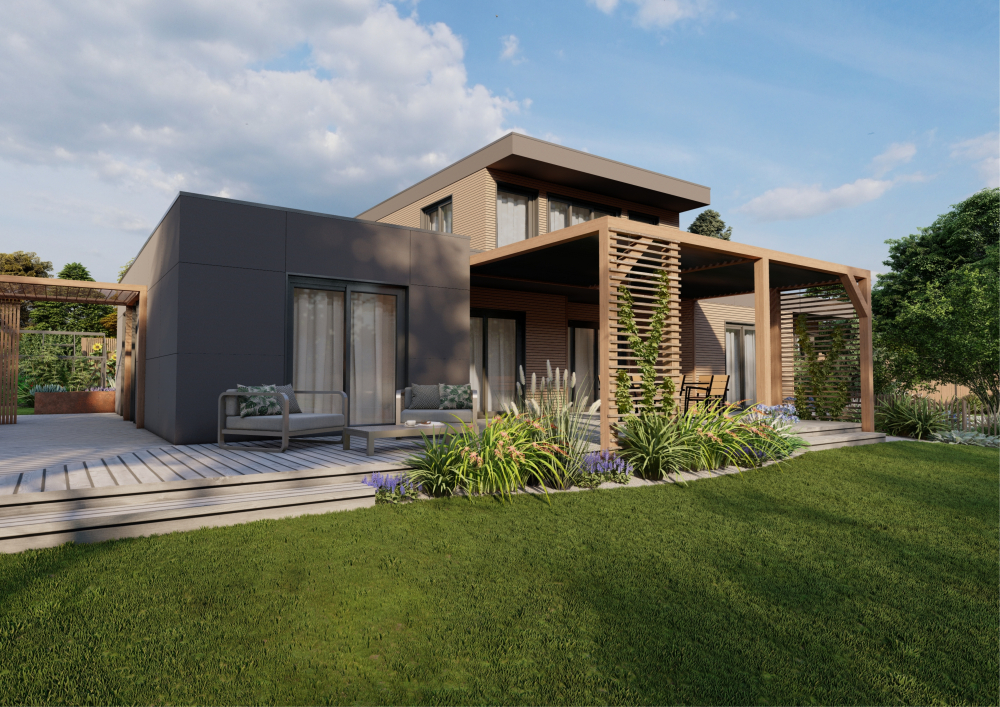 Tendance Naturelle 🐞, votre paysagiste à Monterfil vous présente ce projet d'aménagement complet pour une maison d'architecte, le projet Modern Wood.