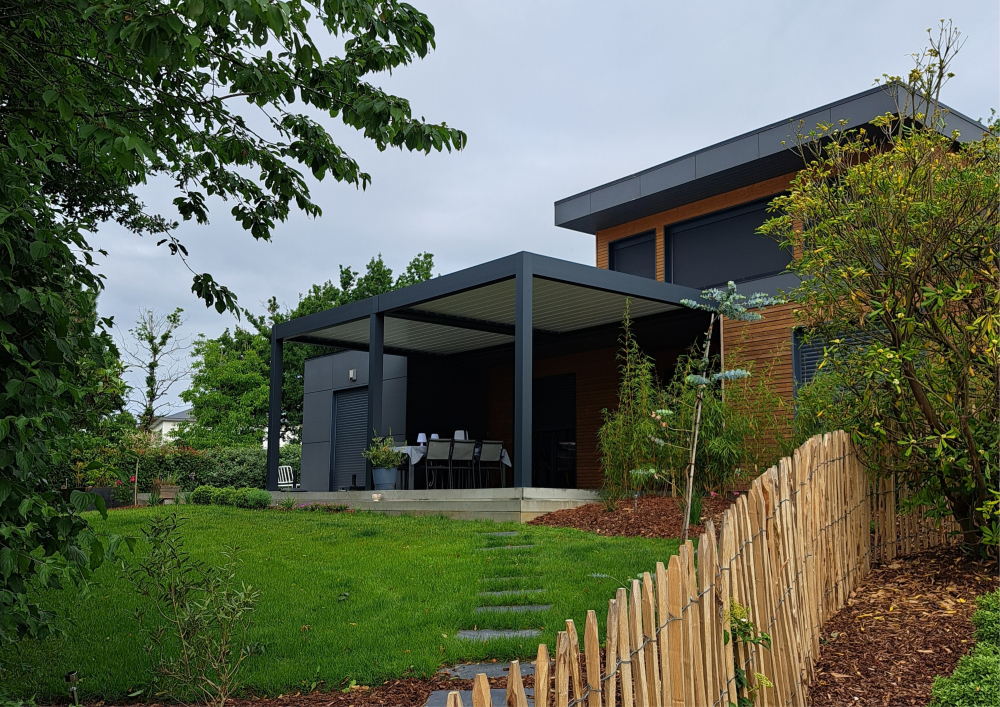 L'aménagement offre à cette maison une entrée digne de ce nom. La pergola s'intègre parfaitement à l'architecture existante. Ce nouvel espace de vie permet de profiter pleinement de la terrasse, tandis que l'apport de végétaux met en valeur l'ensemble.