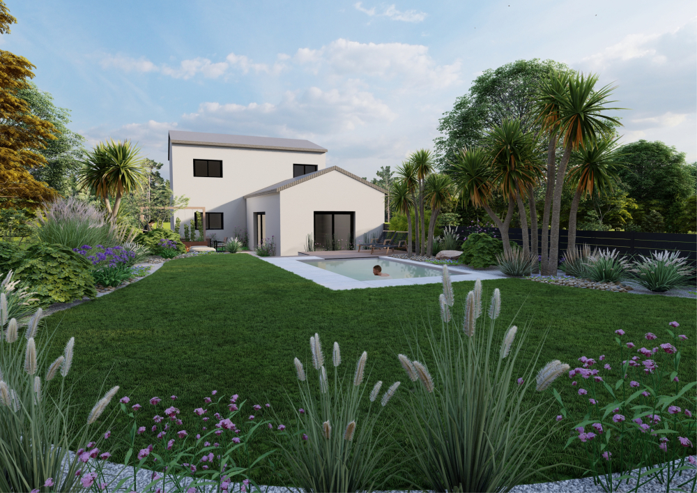 Votre paysagiste Tendance Naturelle🐞 vous présente ce magnifique aménagement avec un espace terrasse et un espace piscine, le projet Caelo.