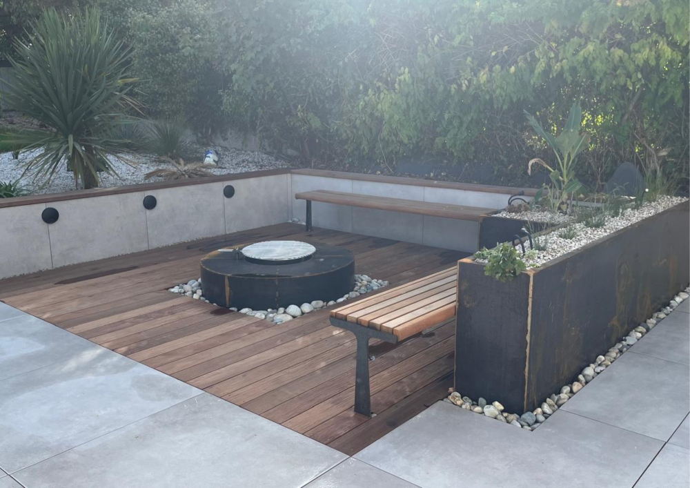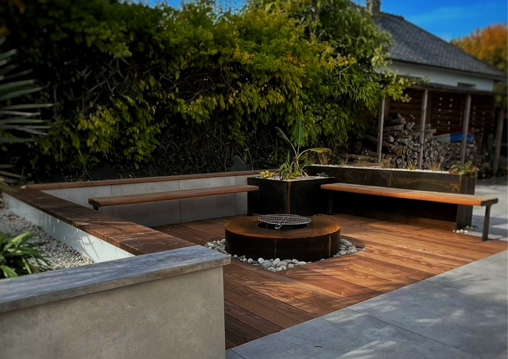 Ce véritable petit coin de paradis allie modernité et durabilité avec toujours une place centrale pour la végétation🌳. La mise en place de mobilier en acier corten permet de dessiner et d'apporter du cachet à l'aménagement.