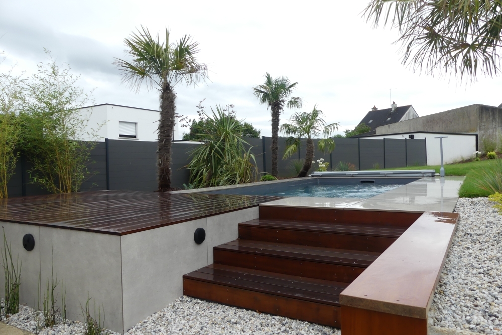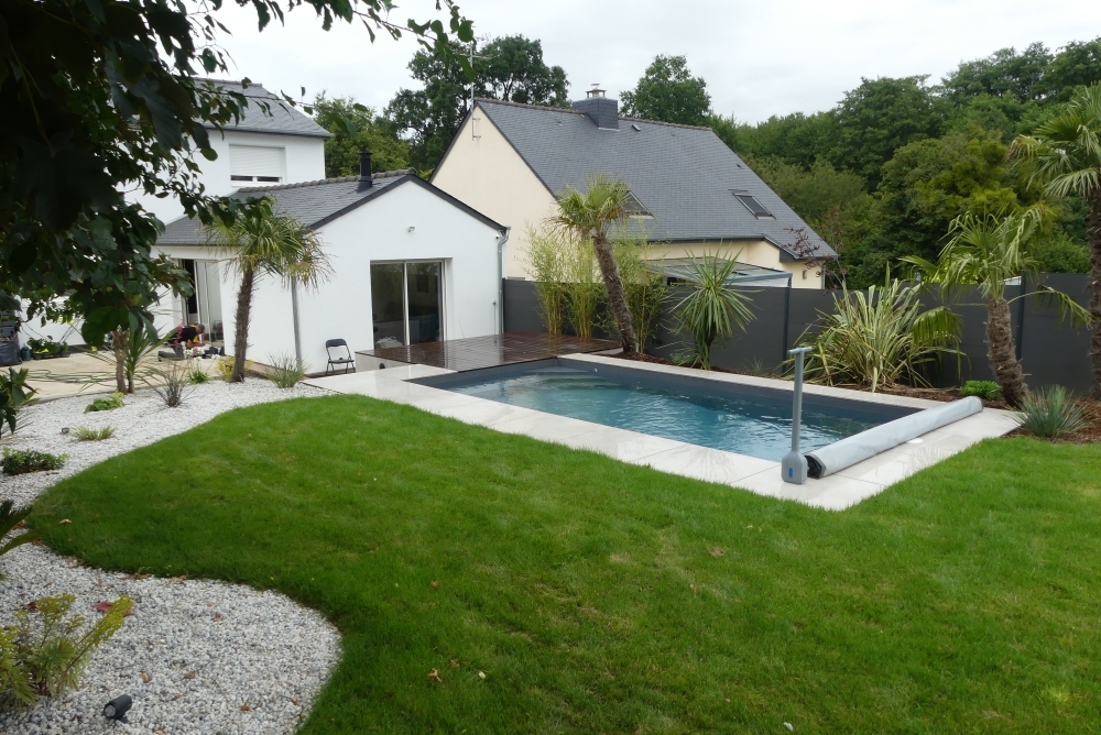 Aménagement d'une piscine et d'une terrasse à Saint-Aubin-d'Aubigné