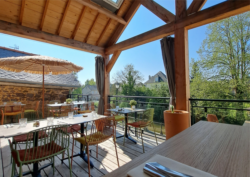La terrasse surélevée offre une vue imprenable sur le Meu, créant ainsi un espace de réception supplémentaire.